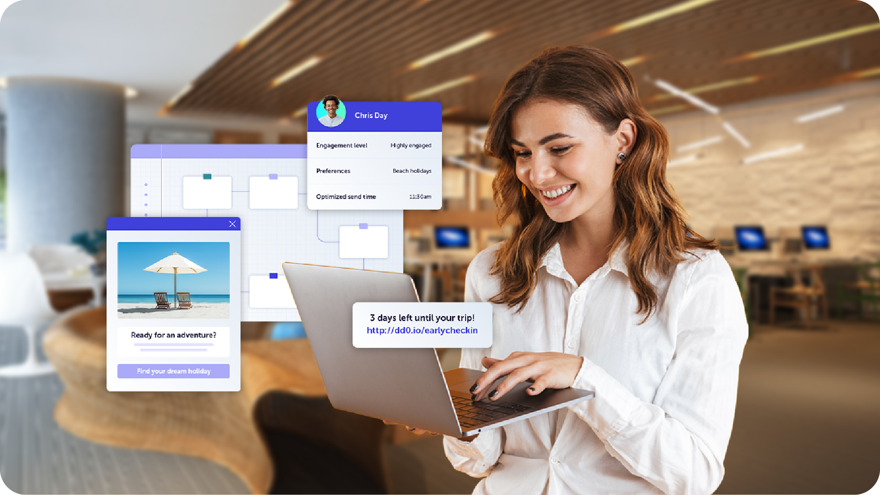 Thankfully with cross-channel marketing automation at your fingertips, you can deliver essential updates seamlessly and efficiently across various communication platforms. Keep travelers informed through instant push notifications, SMS alerts, and other targeted messaging about last-minute flight changes, itinerary adjustments, or crucial announcements. This helps travelers stay informed and avoid any inconvenience resulting from not having timely information.
